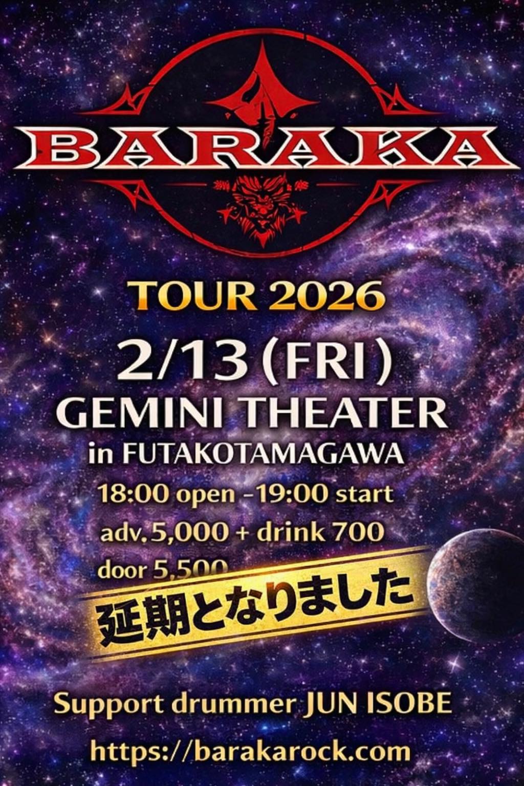 怪我の治療に専念するため、2月13日に開催を予定しておりました二子玉川「GEMINI Theater」でのライブは、延期とさせていただくことになりました。